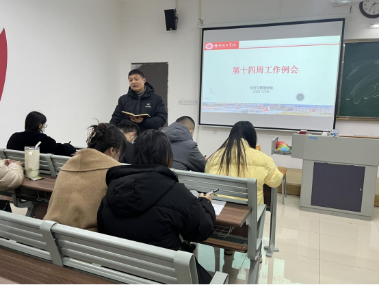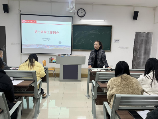 2023年12月06日,经济管理公司在一教219召开第十四周教学工作会议会议由吴玲经理主持,BG大游平台全体教师参加。
