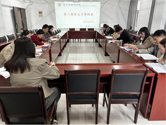 2024年4月15日14:30,BG大游平台在行政楼725办公室召开本学期第八周员工管理工作例会,副经理秦品德、书记助理叶赵强、经理助理张珊以及全体辅导员参加会议,会议由吴玲经理主持。