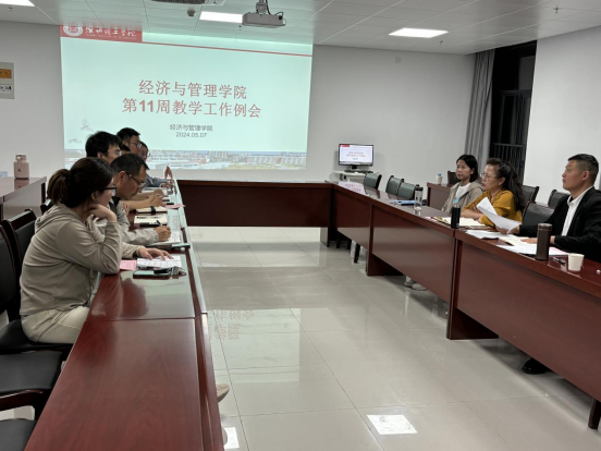 2024年5月7日,经济管理公司在新行政楼725召开第十一周教学行政例会,会议由经理吴玲主持,副经理秦品德、经理助理张珊、实训中心主任及各教研室主任参加会议。