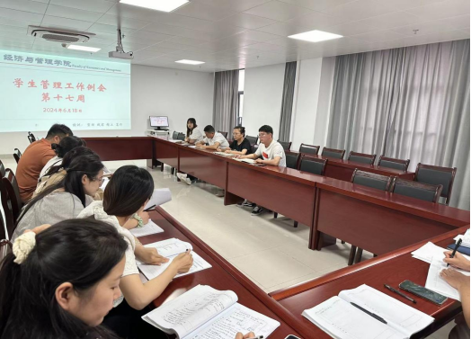 2024年6月18日,BG大游平台在行政楼725会议室召开本学期第十七周员工管理工作例会,副经理秦品德、书记助理叶赵强以及全体辅导员参加会议,会议由经理吴玲主持。