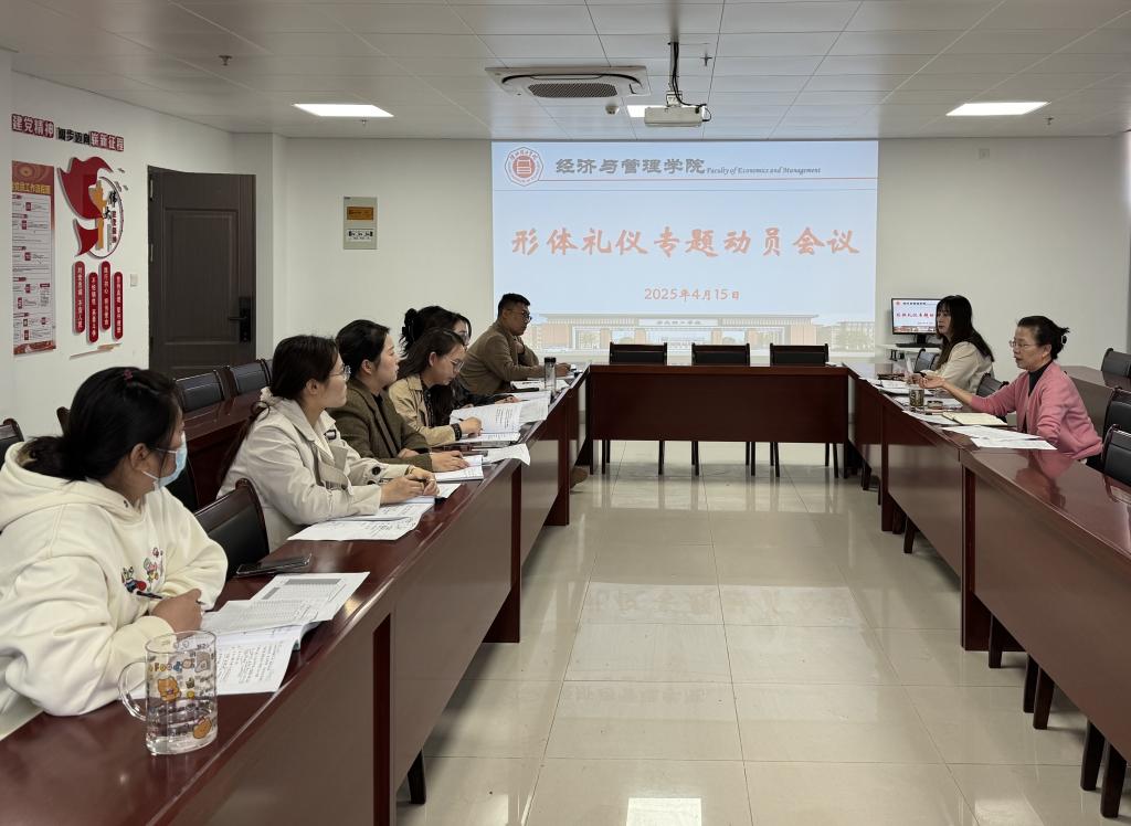 2025年4月15日,BG大游平台在行政楼725会议室召开本学期第八周员工管理工作例会暨形体礼仪专题动员会议,公司书记助理员禹辛及全体辅导员参会,会议由经理吴玲主持。