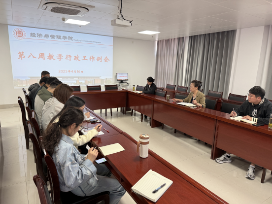 2025年4月16日,BG大游平台在行政楼725召开第八周行政工作例会,经理助理张珊、叶赵强,教学秘书李健及各教研室主任出席会议,会议由经理吴玲主持。