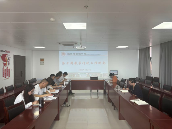 叶赵强就负责的相关工作进行了汇报,张珊就试卷上交时间、教学进度不一致提供情况说明、毕业生论文维普系统检测、毕业生考试等工作进行了布置。