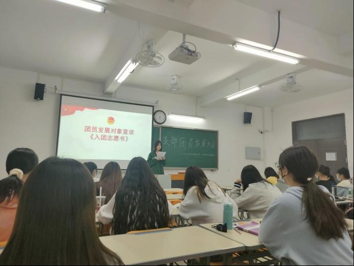 第三个环节,各位入团介绍人就入团发展对象的学习、生活中的表现进行客观公正的评价和介绍,并表明希望支部大会同意入团发展对象加入中国共青团。