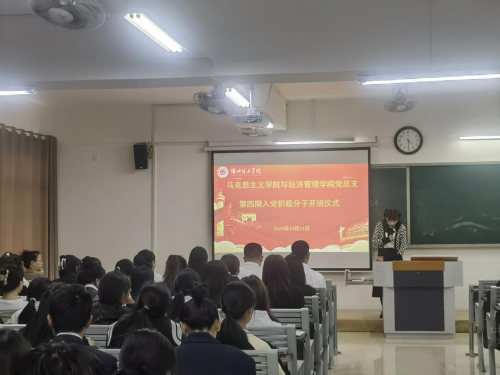 在开班仪式上,经济学员工支部书记员禹辛为本期入党积极分子培训班学员进行动员讲话,她对本期培训班的工作安排、目的、考核内容、方式以及标准等方面向学员们进行了详细的介绍,着重强调了入党积极分子要端正学习态度,正确认识到参加入党积极分子培训的重要意义,珍惜这次培训机会,要在思想和行动上向党组织积极靠拢,用心体会共产党的思想,认真完成培训课程任务。