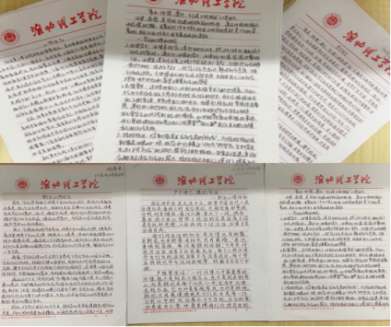 为帮助员工学习的法律知识、品德要求、校纪校规等,11月上旬,经管公司要求全体员工认真手写一份不少于1000字的心得体会,并指出了自身存在的差距和今后的努力方向,并就主题做出承诺书。同学们用肃穆的文字,庄重的承诺,表示定会将法治精神落实到日常事务之中,活动成效显著。