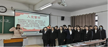 会中,窦惠颖与许诺同志分别代表经济学与管理学全体预备党员向党表决心发言。随后由支部书记带领38名预备党员进行宣誓。