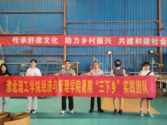 第一站,团队前往潜山舒席传承基地,福泰多舒席厂区负责人热烈欢迎我们的到来,并向我们详细介绍了潜山舒席的具体情况。他表示,潜山舒席编织历史悠久,享誉中外,畅销不衰,主要是因其选料优良,制作精细,用品质赢得了人们的青睐。