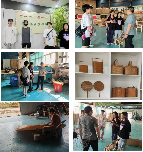 同时,负责人带领我们在基地进行参观学习,团队成员亲手尝试编织,虽然挑战重重,却也深切体会到了非遗舒席的魅力与珍贵。最后,团队成员与非遗传承人进行了进一步的深入交流,探讨潜山舒席在现代社会中的传承与发展。福泰多舒席厂区负责人向我们表示,通过传承老工艺,研发新工艺,结合现代设计理念和市场需求,先后研发了篾扇、舒席工艺包、竹篾家具等新产品,为舒席文化的传承注入了新的活力,他对潜山舒席的明天充满信心,未来他们将继续传承并创新潜山舒席,以此吸引更多游客,促进潜山非遗文旅发展。