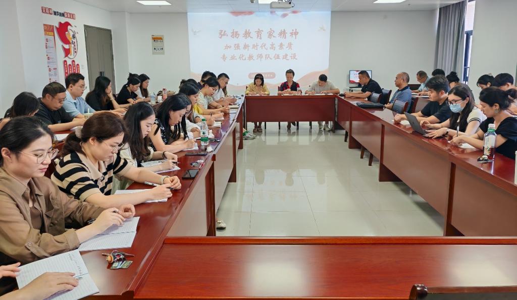 例会第一阶段,由教工作支部刘路路书记领学“中央国务院关于弘扬教育家精神,加强新时代高素质专业化教师队伍建设的意见”,吴玲书记就政治建设、师德师风、专业素养、权益保障、社会风尚六个方面有针对性的进行明确解读,号召全体教师认真学习意见精神,自觉践行教育家精神,做新时代高素质的专业化教师。