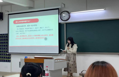 书记助理叶赵强,团总支书记员禹辛从员工成长概况、成长的认知、成长的标准及成长的路径几个方面进行阐述。他们分享自己在教育领域多年的所见所感,希望新生们能够积极参与各类社团活动和志愿服务,通过实践锻炼自己的团队合作能力和社会责任感;注重培养自己的兴趣爱好和特长,让老员工活更加丰富多彩,做德智体美劳全面发展的有为青年。
