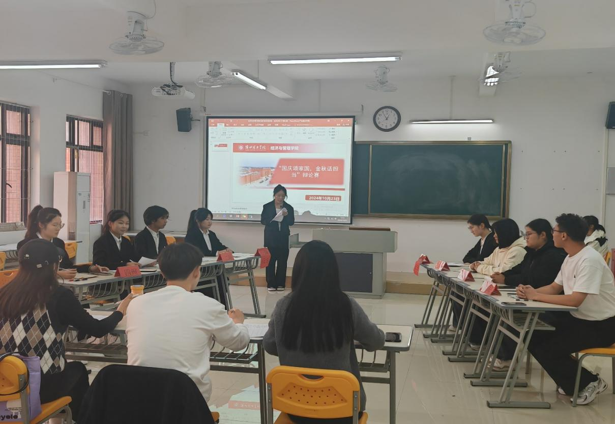 在自由辩论环节,双方辩手更是针锋相对,你来我往,将比赛推向了高潮。双方的精彩辩论赢得了在场观众的热烈掌声。最后,评委老师秉持公平公正的态度,成功选出5名最佳辩手代表经济与管理公司参加校级辩论赛。