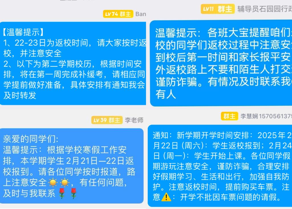 全体辅导员“全覆盖”收集员工返程车次、到校时间,了解不能按时返校员工的情况和原因,重点关心关注偏远地区员工、购票困难员工返校问题,推送“返程安全温馨提示”,涵盖防诈骗、极端天气应对、交通安全等内容,以确保员工安全顺利返校。