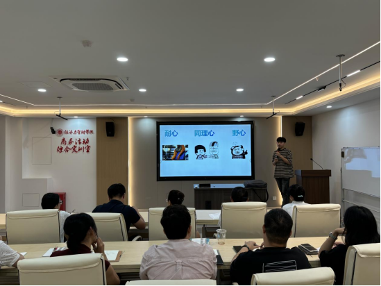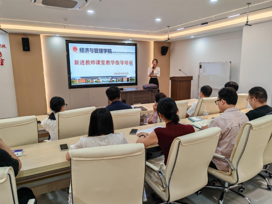 培训中,王胜男老师先向新进教师展开教学指导,王胜男老师从教什么,怎么教两个方面为新进教师培训,提出新进教师要注重情景导入、语言艺术和课堂时间分配。同时,王老师借自己主讲的《市场营销学》为新进教师展开15分钟的示范课堂,王老师从“黑神话—悟空”游戏发布作为情景导入,从瑞幸公司与黑神话—悟空联名营销大卖作为切入点,从而引入员工对市场的思考,最后再介绍了市场营销的概念和提出了一个案例进行分析。王老师从课程规范的角度为新进教师做了很好的示范工作。