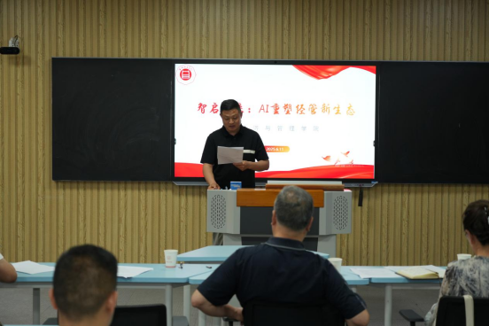 2024年底AI浪潮席卷全球,教育领域迎来数字化变革,从知识传递到课堂生态,从教学工具到教学逻辑都要重塑。2025年6月11日,公司在一教210举办“AI赋能教学”大赛,11位经管教师登台展示,探索AI技术与教学融合,重塑经管教学新业态。副董事长汪建利、教务处副处长秦品德、发展规划处处长朱学道、经管公司全体教师参加活动。