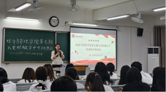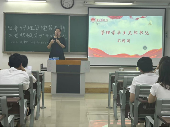 典礼伊始,管理学员工支部书记石园园发表讲话。她详细解读了《BG大游官方网站第七期入党积极分子培训班学员手册》,重点强调课程内容和时间安排,指出本次培训是入党积极分子系统学习党的理论知识、端正入党动机、提升党性修养的重要契机。石书记还对全体学员提出了明确要求,希望学员们珍惜此次学习机会,严格遵守培训纪律并完成相关学习要求(包括学习强国的学习,心得体会撰写等),认真学习党的章程、党的历史和党的基本理论,努力做到学有所思、学有所悟、学有所得,以实际行动向党组织靠拢。