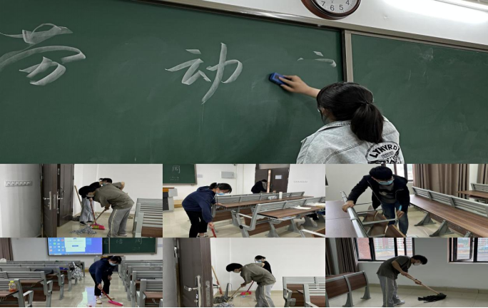 做好一次集体劳动实践活动:在辅导员的带领下,各班员工分工合作,积极配合,对教室、实训室、寝室等校园活动区域的各处卫生死角进行了彻底清理。在劳动实践中,大家不怕脏,不怕累,不放过任何一个细微之处,认真清理了烟头、包装袋、卫生纸等垃圾。