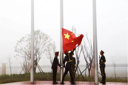 7点20分升旗仪式正式开始。全体师生肃然起敬,在全体师生共同注视下,英姿飒爽的国旗护卫队队员们,护送鲜艳的五星红旗进场,当国歌奏响,五星红旗冉冉升起,全体师生庄严肃立,目光都聚集在五星红旗之上,伴随着国歌的结束,国旗也升到了旗顶,飘扬在高空中。