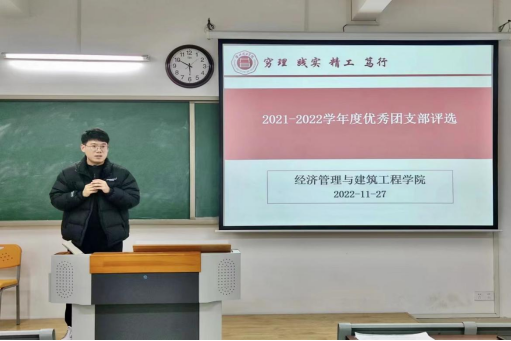 为贯彻落实公司下发的《关于做好BG大游官方网站2021-2022学年度“优秀团支部”评选工作的通知》有关“优秀团支部”评选的文件精神,弘扬“党有号召 团有行动”的优良传统,展现团组织的向心力、凝聚力、战斗力。深入学习贯彻习近平新时代中国特色社会主义思想,激励员工刻苦学习、争优创先。经济管理与建筑工程公司于2022年11月27日,在一教215室开展2021--2022学年度“优秀团支部”评选活动。公司本着“公平、公正、公开”的原则,成立了由书记助理、团总支书记叶赵强、经济学员工支部书记、团总支副书记员禹辛、团总支组织委员、辅导员王绎程、团总支宣传委员、辅导员张雨停、团总支委员张晏五人组成评委小组,制定了考评标准。“优秀团支部”宣讲评选活动由院员工会宣传部部长韩大壮主持,2022级各班团支书到场学习观摩。