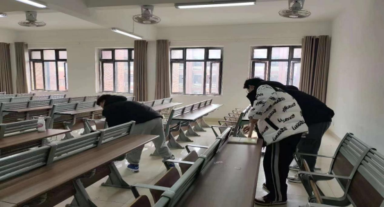 活动开始前,员工会负责人在1号教学楼2楼召集参加本次活动的同学,强调了本次活动的区域和标准;活动开始后,一部分同学拿着环保清洁袋,不嫌脏乱,将桌面上的纸团、废纸屑进行清理,另一部分同学们拿着扫帚,清扫教室、实训室地面,同学们根据分工,到各自负责的区域进行消毒清洁;在大家的共同努力之下,教室、实验室焕然一新,。