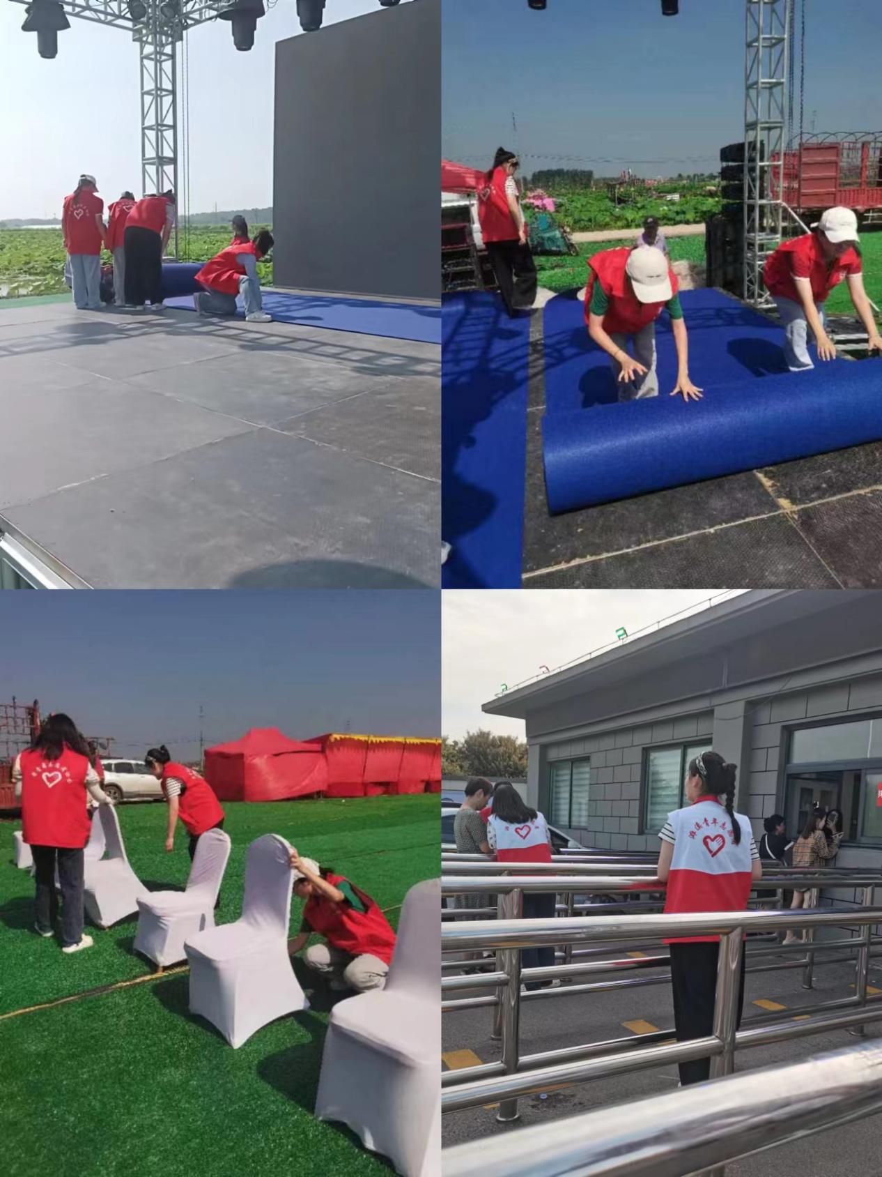 7月10日,百善镇道口村柳江口景区开展大型灯光秀泼水节活动,荷塘月色景区开展荷塘月色文化节活动,实践团队在村支部协助工作人员进行活动的票据清点核对,在活动现场做现场准备工作,布置活动舞台,观众坐席,并在活动开展时开展志愿服务,维持活动现场秩序,活动道具维护,游客购票指引等。