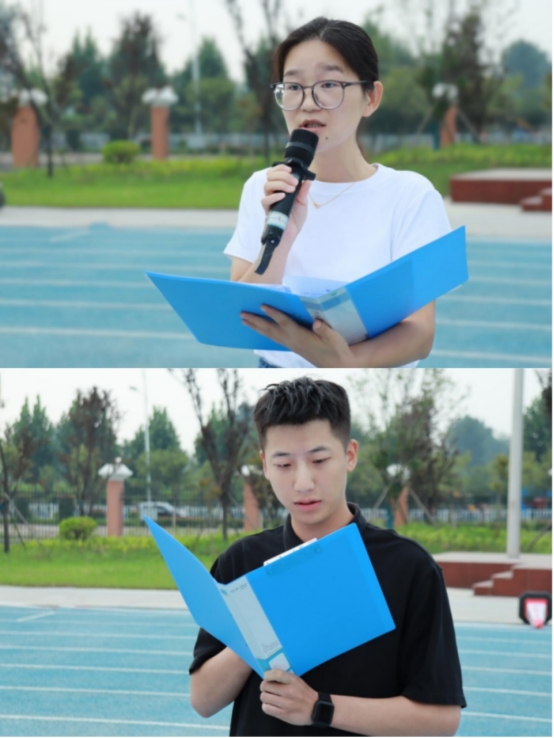 23级王宗元代表新生在进行国旗下做“我与时代共前行”的主题演讲,作为新生也是新时代老员工,需要养成良好的行为习惯,规范自身的言行,树立远大的理想和正确的价值观、人生观,从而来践行我们的责任和使命。