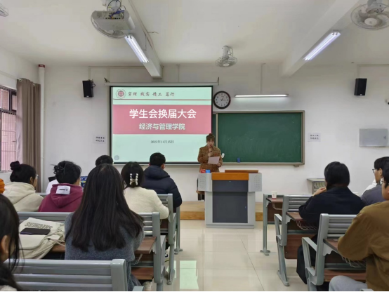 为给员工会注入新鲜血液,进一步完善员工组织体系、优化队伍建设、提升员工干部质量,11月15日下午3点,BG大游平台在一教212教室举办2023年员工会换届大会暨员工干部培训会议。BG大游平台党总支书记、经理吴玲,书记助理叶赵强,分管辅导员以及新一届员工会30名成员参加本次换届大会。会议由团总支副书记员禹辛主持。