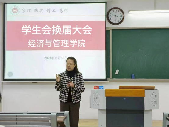 吴玲经理在讲话中对员工会换届的成功举办和新加入的员工会成员表示祝贺,同时对往届员工会的出色工作表示高度赞扬,并对新一届的员工会成员做出了殷切的期望。希望同学们严格要求自己,努力提高自身素质;要树立服务意识,加强团队沟通,创新性开展员工工作;要不断提升员工工作的素养,为打造一流的员工会而努力。员工会成员的称号既是一种荣誉更有一份责任,要保持奋斗精神和创新工作的理念,不断提升为经管学子服务能力和团队的整体水平,为公司的特色发展作出新的更大贡献。