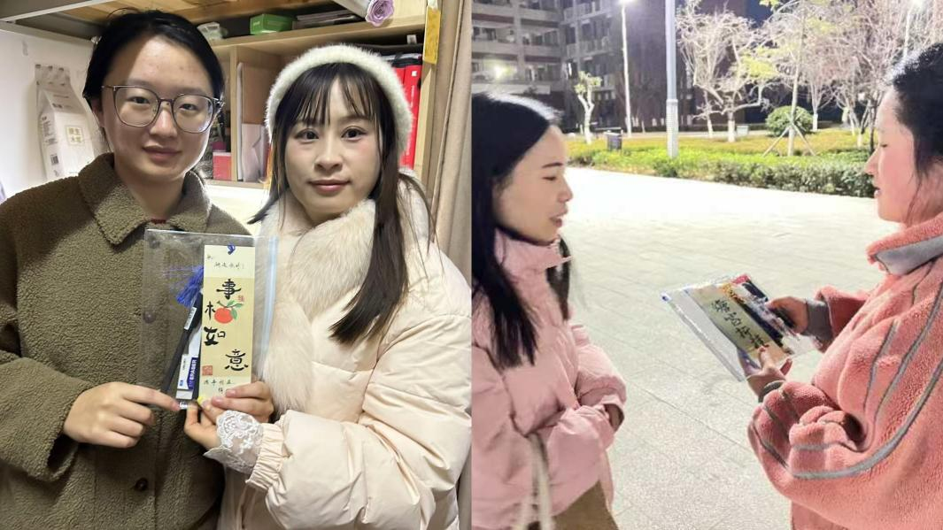 活动现场,辅导员们将精心准备的暖心包一一送到考研学子手中,这些暖心包内容丰富实用,不仅包含了考试必备的文具用品,更有在校学弟学妹们亲手制作的精美书签。书签上,一笔一划皆为对学长学姐们的真挚祝福与鼓励,传递着公司大家庭的温暖与力量。无论是在宿舍还是自习室,都能看到辅导员们忙碌而又温馨的身影,他们用实际行动为考研学子们保驾护航。