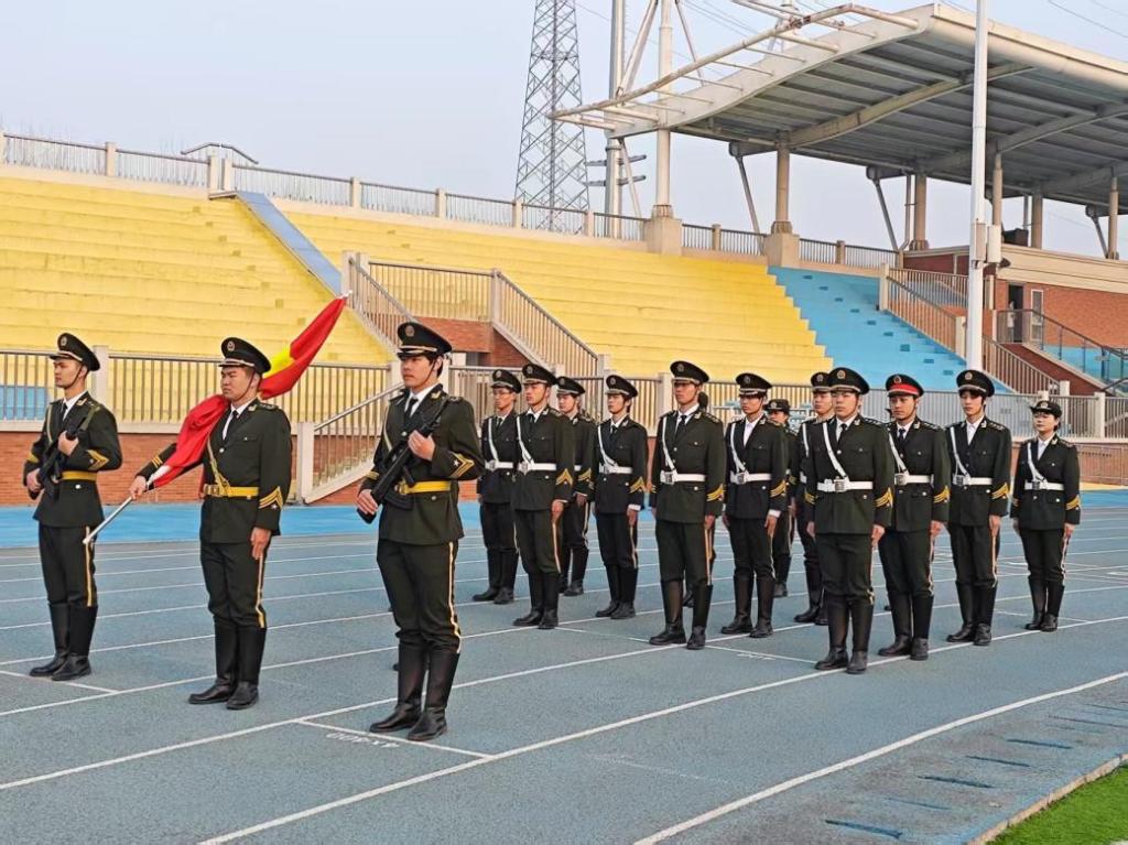 每周一的清晨,国旗护卫队的队员们步伐坚定、精神饱满,护送着鲜艳的五星红旗缓缓走向升旗台。随着激昂的《义勇军进行曲》响起,五星红旗冉冉升起,在晨光中迎风飘扬,点燃了全体师生的爱国情怀,也激发了大家对新学期的奋斗期待。
