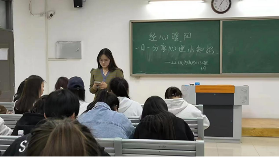 本次活动是以分享心理健康知识的形式展开。分享者主题鲜明深刻,层次清晰,用简洁明了的语言将自己所读所悟融汇在分享中,并结合时事发表自己的感受体会。在场其他同学专注倾听,沉浸其中。同学们也纷纷表示通过此次对心理健康知识的分享与交流,使得他们对心理健康有了进一步了解,也明白了拥有一个健康的心理能够给人带来满满正能量。