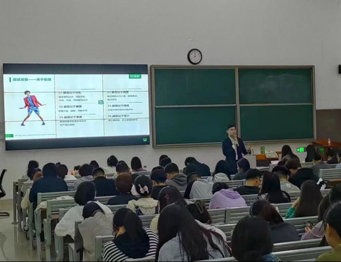 本次讲座的主讲嘉宾贺豪是负责全国链家招聘管理、企业文化建设、雇主品牌部的负责人。讲座内容分为简历制作、面试技巧两个部分。讲座伊始,贺豪从求职简历制作对同学们进行了指导。在求职简历制作方面,向同学们展示了一些优秀的和错误的简历示例,根据这些示例向同学们指出制作优秀简历的要点,并给在场同学提供了优秀简历模板。随后,在面试技巧方面,贺豪详细介绍了面试的主要流程,并认真地讲解了面试前需要做的准备工作。“自我介绍和回答问题是面试必不可少的步骤”,贺豪现场邀请了几位同学做自我介绍,并就此给同学们的自我介绍进行了分析,向同学们分享了面试押题法则——“STAR法则”和面试官追问逻辑——“BEI法则”两种方法如何准备自我介绍。