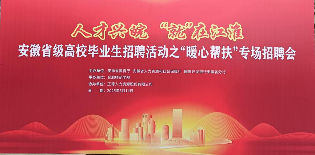 2025 年 3 月 14 日,BG大游平台组织员工前往合肥师范公司,参加由安徽省教育厅、安徽省人力资源和社会保障厅、国家开发银行安徽省分行联合主办,合肥师范公司承办,正德人力资源股份有限公司协办的 “人才兴皖,‘就’在江淮——安徽省高校毕业生招聘活动之‘暖心帮扶’专场招聘会”。